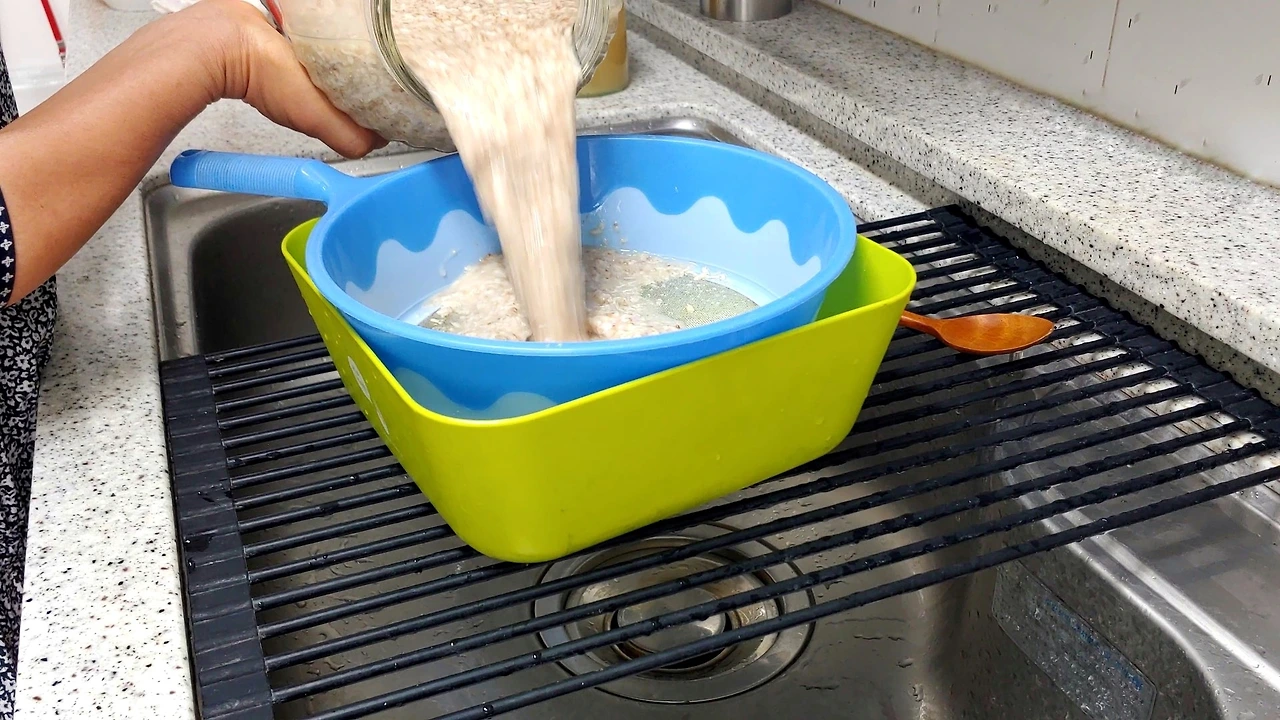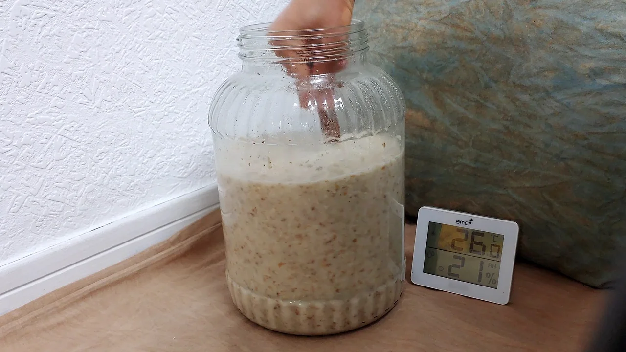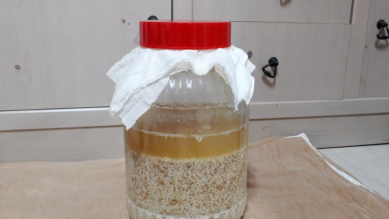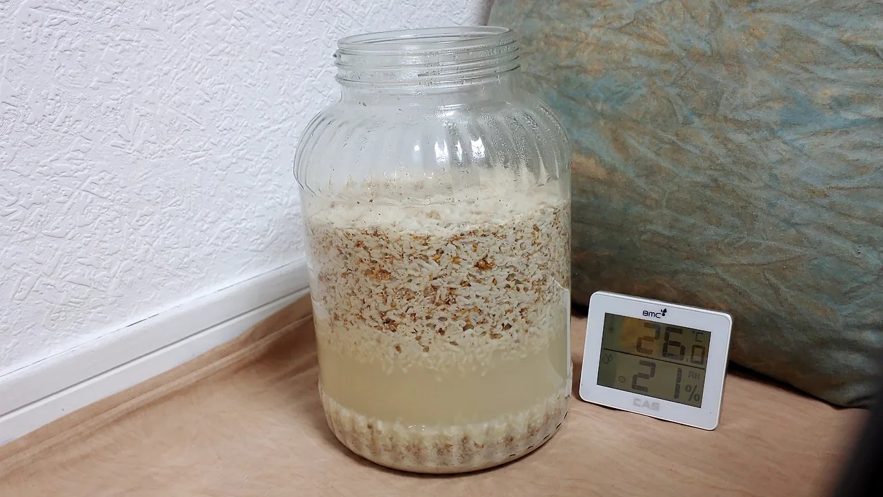 지나 열어봤더니 쌀과 누룩이 위로 떠올라 있다.