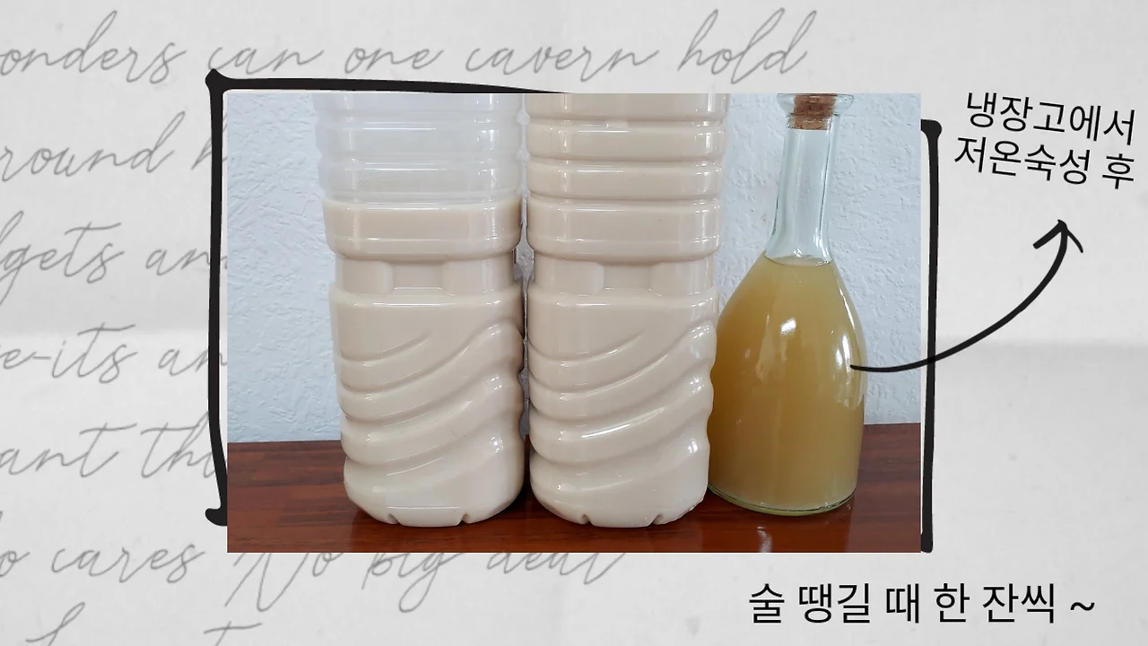 거른 막걸리를 냉장고에 넣고 저온숙성 시켰다.