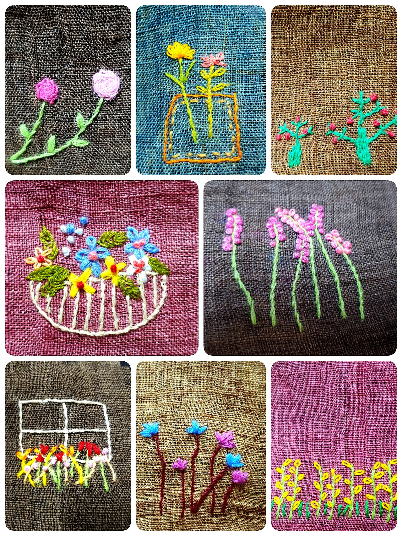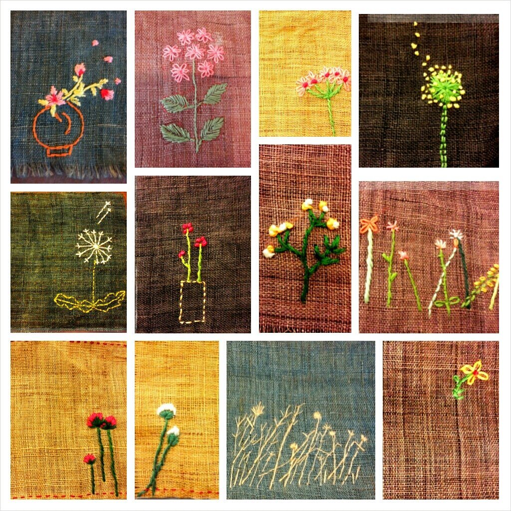 '천에 색실로 그림을 그린다',는 생각으로 가볍게 시작했다. 빨갛고 노란색실로 꽃잎을, 초록과 연두색실로는 이파리를 만들었다. 삐뚤빼뚤 엉성해서 몇 번을 풀었다가 다시 놨다. 다 놓고 나서보면 유치원생이 그린 그림 같았다. 동생은 내 작품(?)을 보고 ‘대단히 인간적이다!’고 칭찬했다. 너무 잘 놓으면 기계수로 착각한다나.