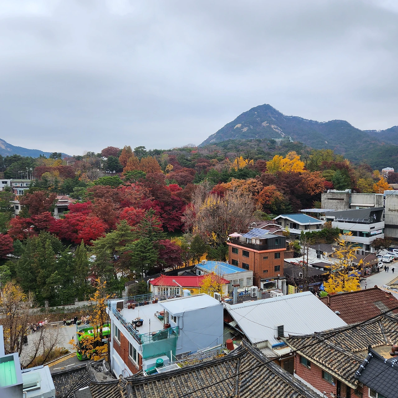다음 날 아침, 비가 그친 날씨에 우리는 콧노래를 불렀다. 폭우가 아니었다면 생각지도 않았을 날씨에 대한 찬사가 이어졌다. 따뜻한 방바닥에서 꿉꿉했던 옷들도 뽀송하게 말랐다. 바지런한 친구가 감바스와 샐러드로 근사한 아침을 차려줘서 호텔 조식 부럽지 않았다. 아침 산책을 나갔더니 골목길도, 한옥들도, 하늘도 깨끗했다. 세찬 가을비 덕분에 묵은 때를 벗은 것 같았다.