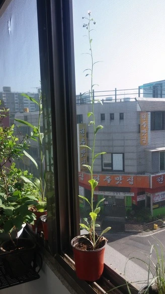 베란다에 수십여개의 화분들속에서 그 꽃을 보았다. 분명히 집안에서 보았던 어린 새싹이 훌쩍 자라서 봉우리와 꽃이 피어있었다.