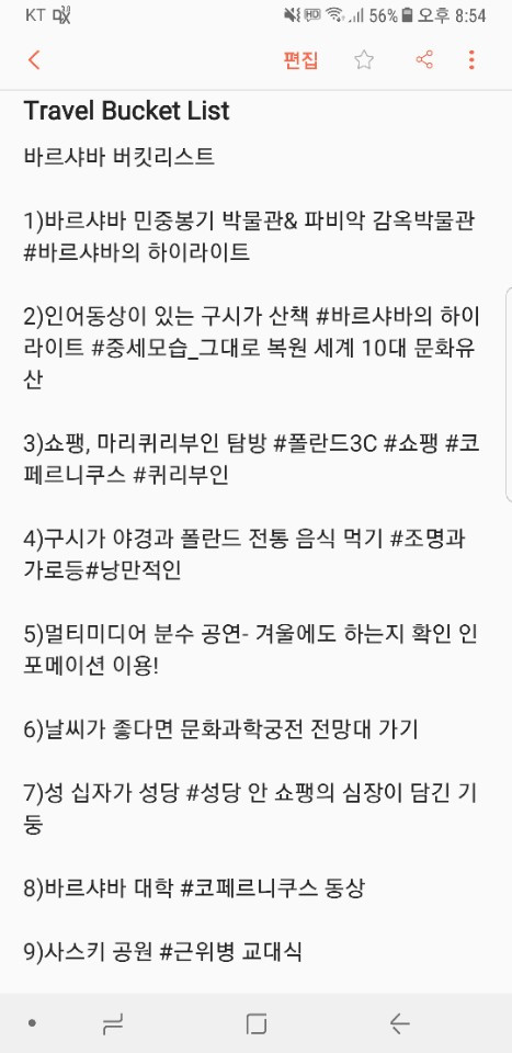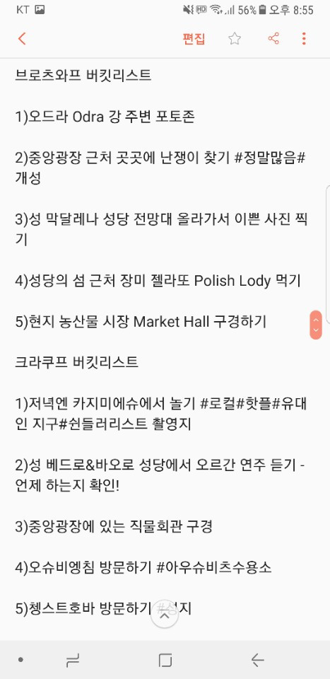 첫 여행 때 느꼈던 것 중 하나가 여행 계획은 계획일 뿐. 그날그날 조금씩 바뀌기도 하고 아예 다른 일정이 되기도 한다. 그래서 계획을 짤 때는 요일별 시간별 세세하게 짜는 것보다는 여행 버킷리스트를 만들어 하나씩 체크하는 방식이 어떨까 한다.