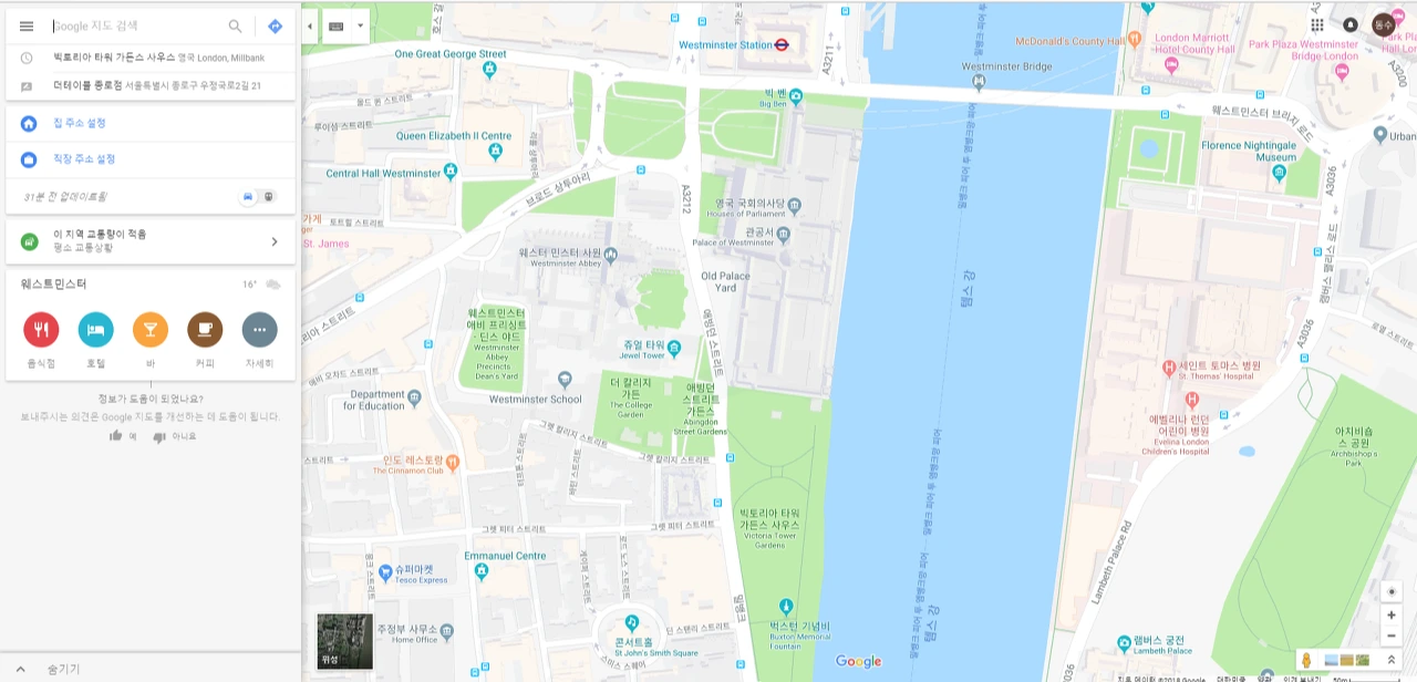 버스나 언더그라운드(underground)를 타고 빅토리아 타워 가든을 갈 수 있었지만 걷고 싶었다.