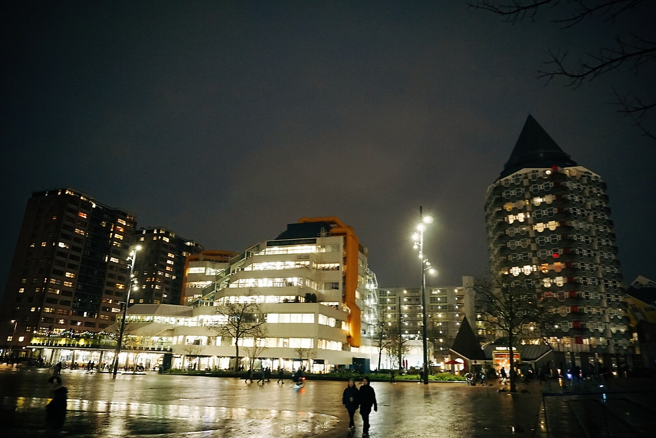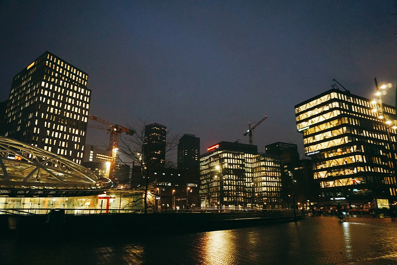 어떠한 부연 설명이 필요하지 않았다. 건물에서 뿜어 나오는 화려한 조명 빛이 로테르담의 밤을 더욱 아름답게 만들어주고 있었다,