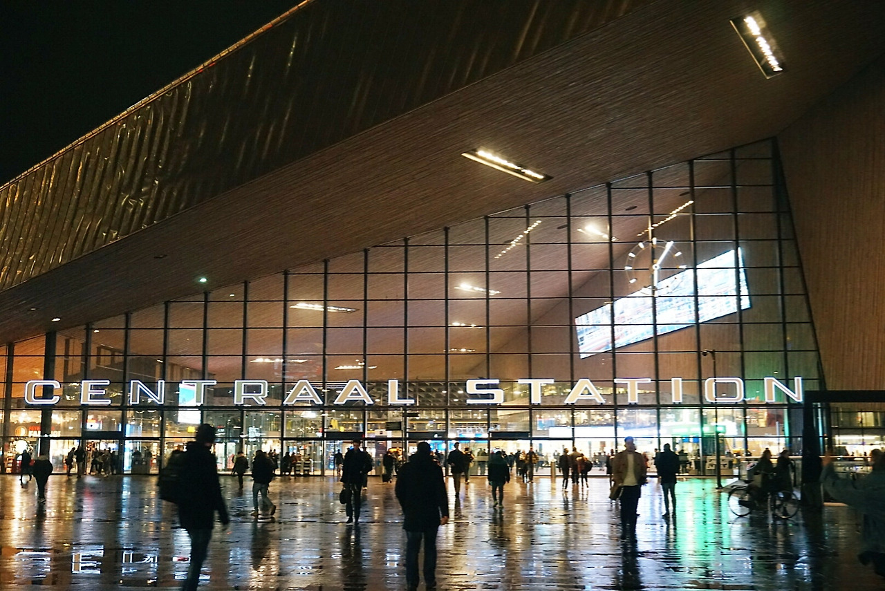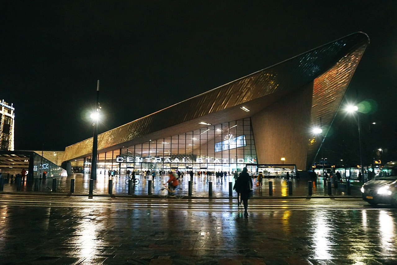 충분히 만족스러울 정도로 로테르담의 야경을 구경했다고 생각했기에 다시 암스테르담으로 가기 위해 중앙역으로 갔다. 중앙역 역시 낮과 다르게 조명들로 중앙역 주변을 비추고 있었다.
