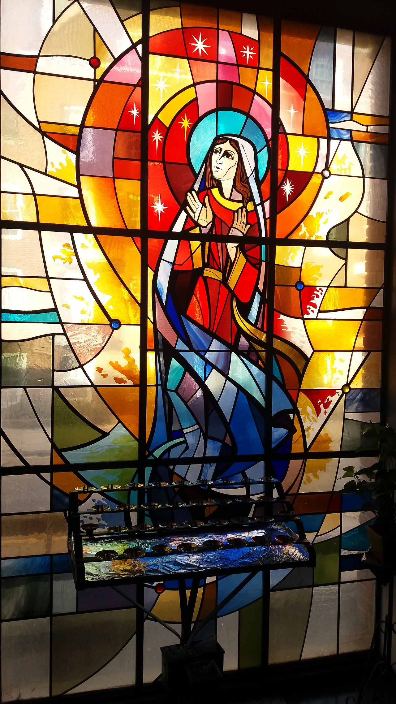 외부의 햇빛으로 스테인 글라스 장식은 더욱 다채롭게 빛이 난다.