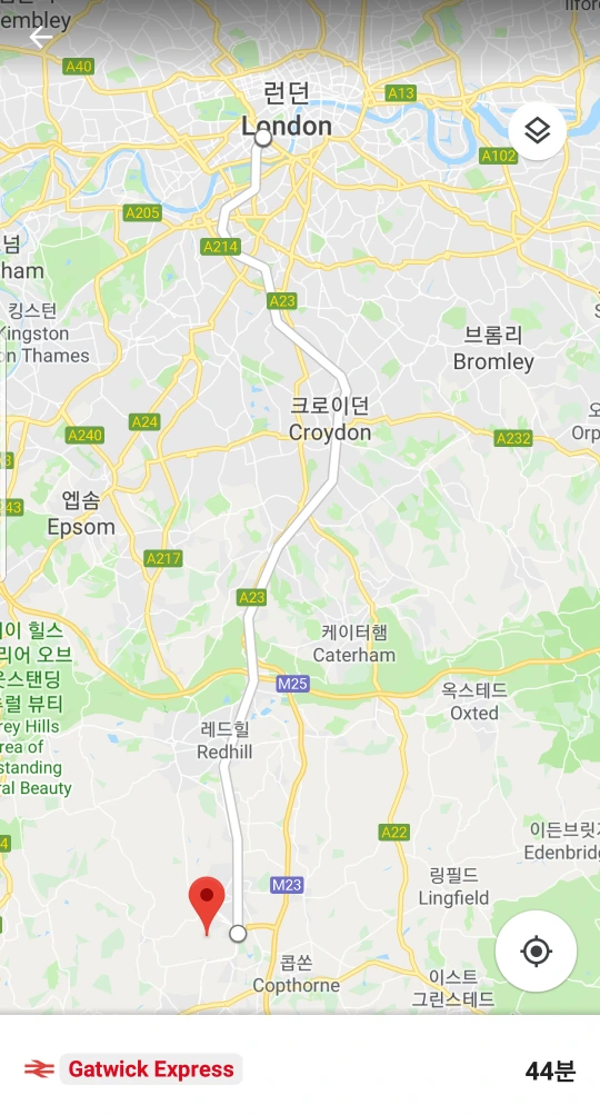 빅토리아 역에서 게트윅 공항까지는 대략 1시간 정도 넘게 걸리는 것 같다.