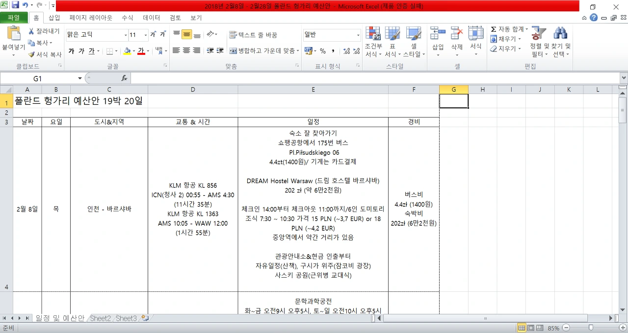 일정, 숙소, 교통편, 예산안, 루트, 영어, 길 찾기 등등