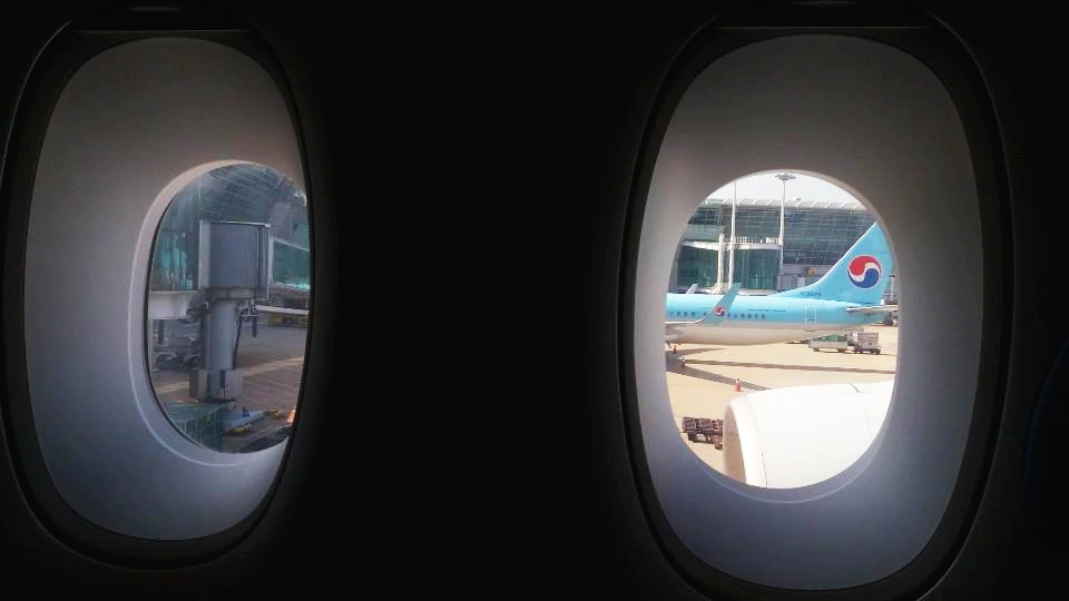 점점 비행기 탑승할 시간이 되고 사람들이 하나둘씩 줄을 서기 시작한다.