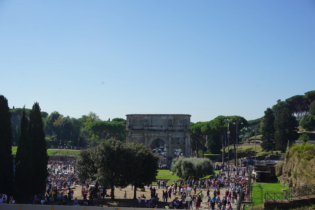 콜로세움과 포로 로마노 근처에 개선문이 보인다.