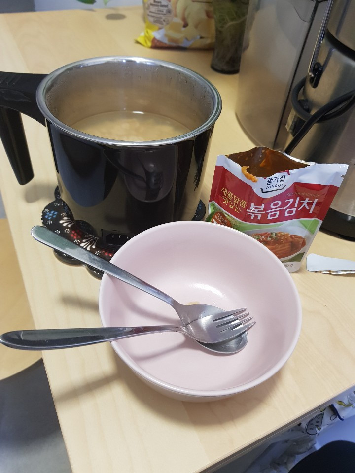 아침은 가볍게 누룽지에 볶음 김치를 먹기로 했다. 뜨끈하고 구수한 누룽지를 먹고 나니 한결 속이 풀렸다.