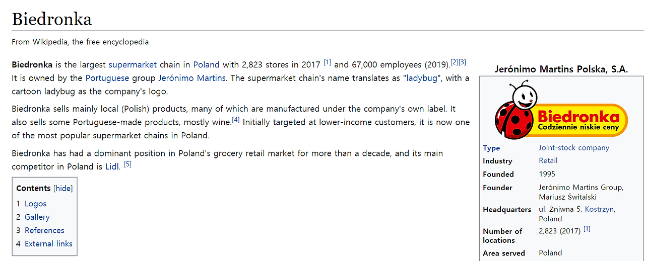 폴란드에서 가장 큰 슈퍼마켓 체인점이라 한다.