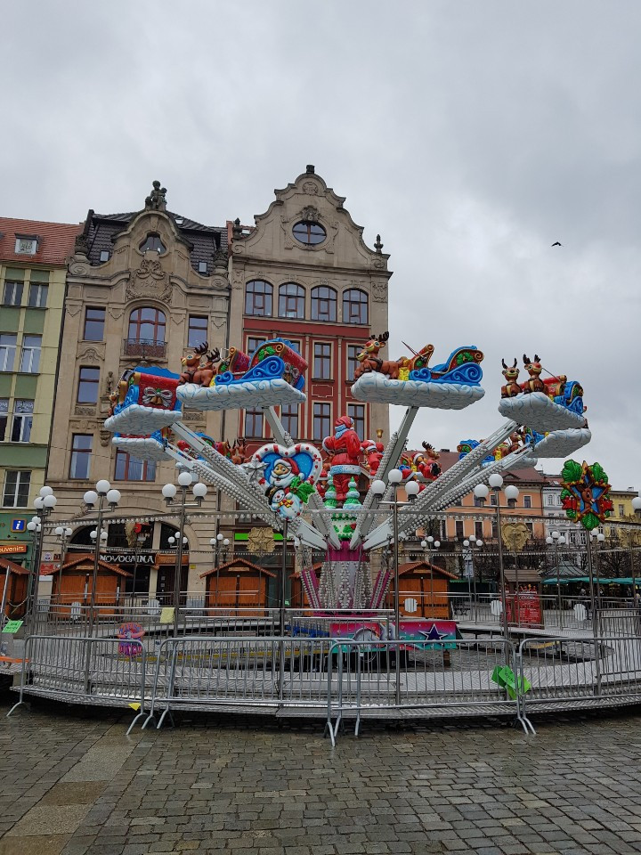 하늘을 봤다. 점점 맑아지는 것 같았지만 잠시 또 흐려졌다. 유럽의 변덕스러운 날씨는 여전했다. Rynek에 도착하니 예상대로 큰 크리스마스가 있었지만 크리스마스 당일인지 크리스마스 마켓들도 열지 않았고 중간중간 보이는 놀이기구들도 운영을 하지 않았다. 크리스마스 당일엔 모든 사람들이 쉬는 날처럼 보였다. 그나마 연 곳은 꽃집 정도랄까.