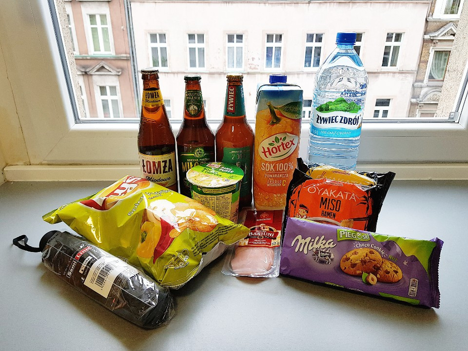 슬슬 점심 먹을 시간이 되자 오늘은 외식은 할 수 없을 듯하여 일단 집으로 가기로 했다. 집으로 돌아가는 길에 운이 좋게 Żabka라는 편의점이 잠깐 오픈을 해서 매장 구경도 할 겸 이것저것 필요한 것들을 담았는데 맥주는 늘 빠지지 않고 담았다.