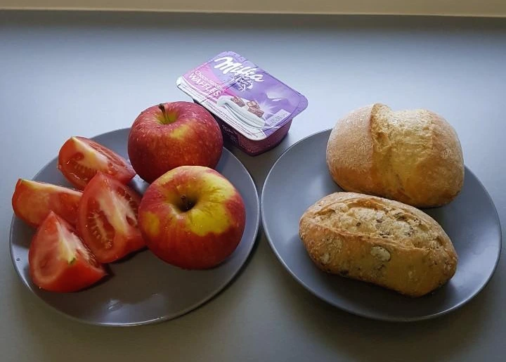 조촐하게 사과, 토마토, 빵, 요구르트1층 아파트 현관문을 나와 어디를 갈까 잠시 고민했다. 이 동네에서 크리스마스 분위기를 느낄 수 있는 곳은 어딜까 하던 찰나에 Rynek이 떠올랐다. 아마 그곳에 가면 큰 크리스마스 트리가 있을 것 같은 느낌적인 느낌이 들었다.