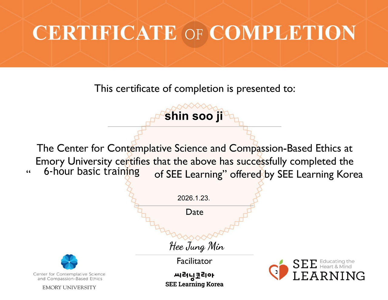 SEE Learning 역시 유연한에듀 모임에서 추천받았다. 동국대 아동청소년교육학과 민희정 교수님께서 줌 직강으로 기초교육 워크숍을 진행해 주신다. 재작년부터 유에듀 선생님들께서 한창 많이 들으실 때는 크게 관심을 갖지 않았는데, 내 마음이 힘들고 괴로워지니 자연스럽게 찾아 듣게 되었다. 마음공부도 시절인연의 정신으로 하고 있는 스스로가 좀 웃긴 한편으로는 이런 생각도 들었다. '내가 내 마음에 대해 알고 싶어서 이렇게까지 시간과 공을 들인 적이 있었던가?'