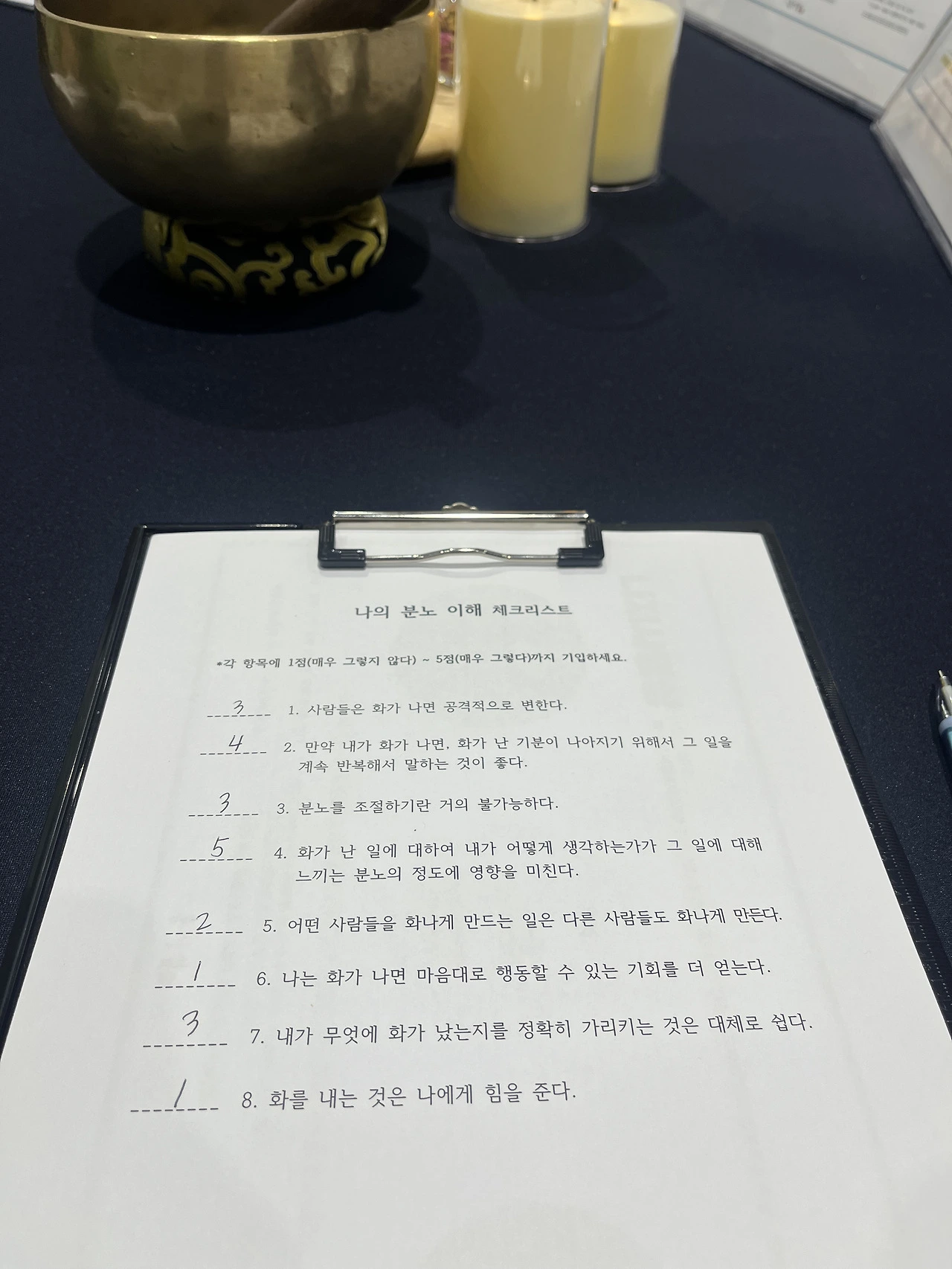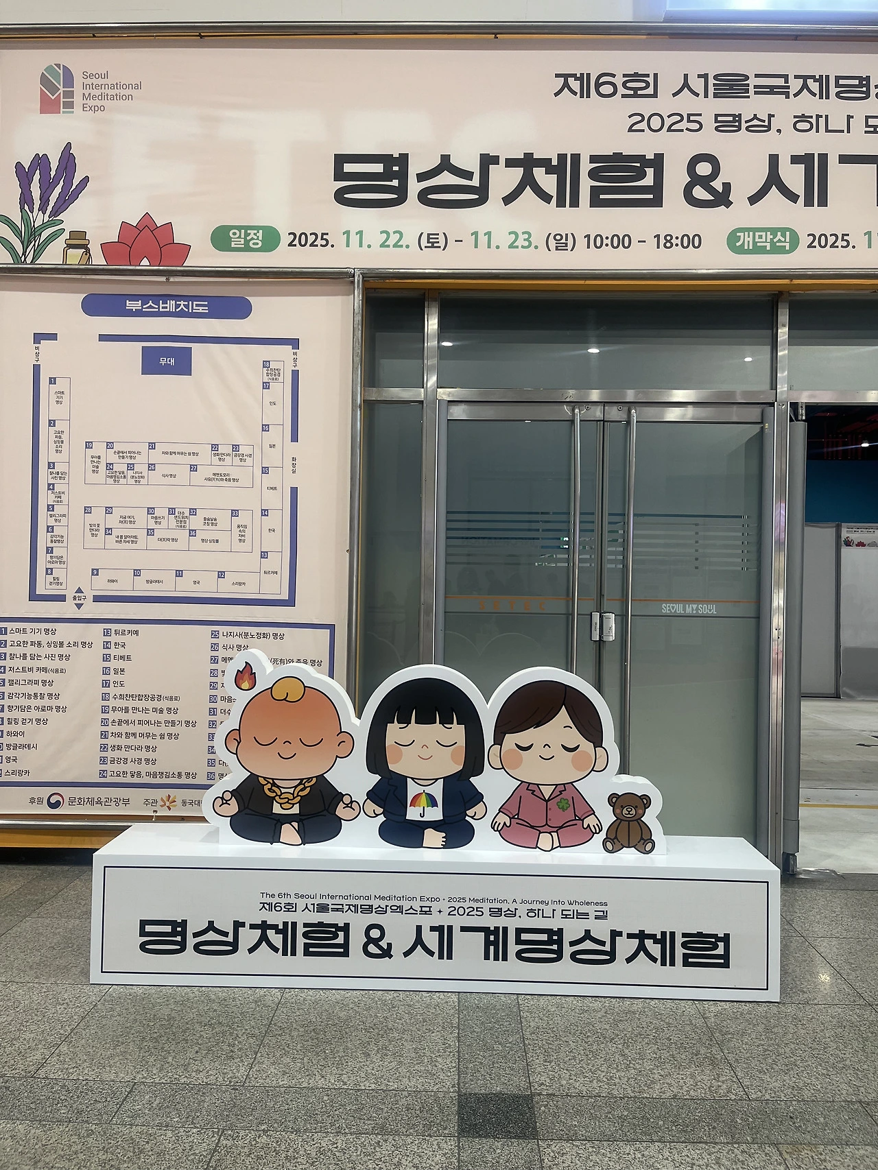 난임 스트레스가 극에 달한 11월에 나 홀로 서울국제명상엑스포를 찾아갔다. 설렁설렁 이 부스 저 부스를 기웃거리며 관심 가는 체험에 참여했다. 어쩌면 내게 참 필요했던 말씀을 기대이상으로 많이 들으며, 스스로를 돌아볼 수 있는 시간이었다. 그야말로 내가 나랑 하는 명상데이트.