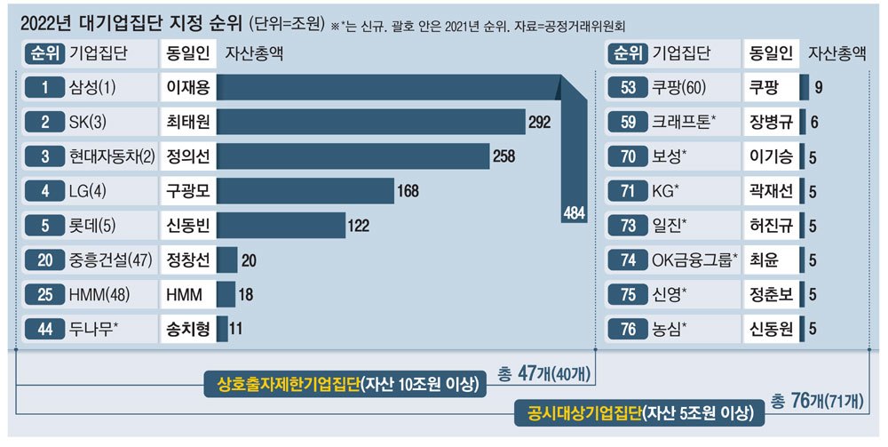 - 네, 다름 아닌 대기업 순위인데요. 공정거래위원회가 어제 올해 대기업 집단에 대한 자료를 냈는데요. 바로 여기에서 SK 현대차를 제치고, 2위로 올라섰습니다. 현대차는 자산총액 기준 3위로 내려앉았습니다.