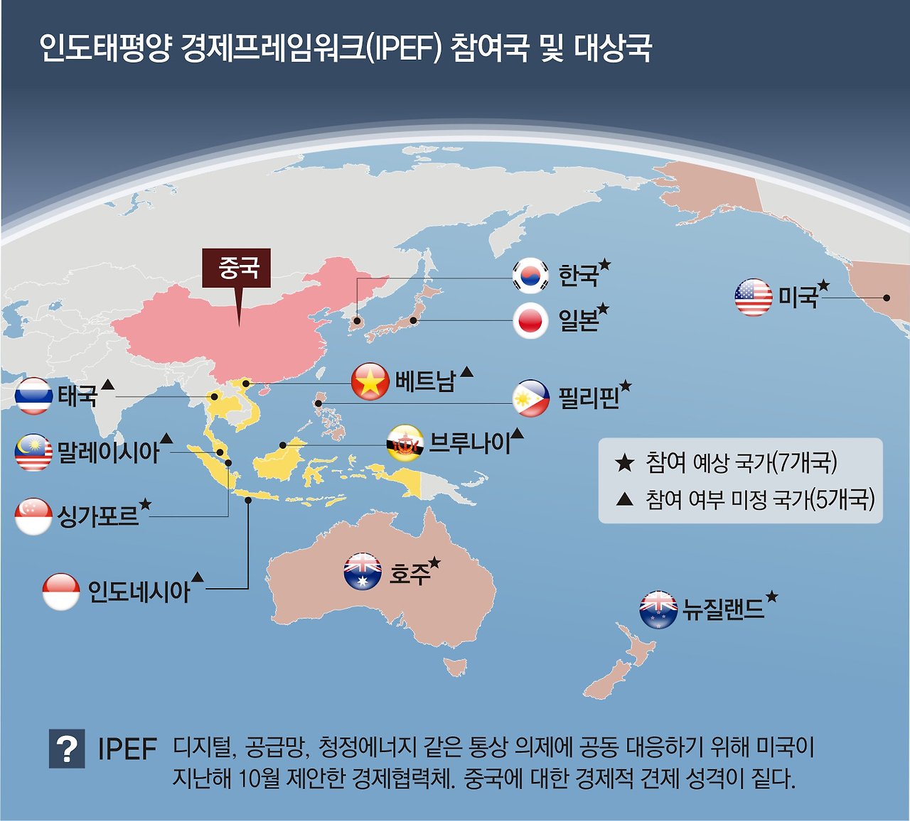 이번 한미 정상회담에서 우리나라는 IPEF 참여를 공식화했습니다. 여기에 중국은 포함돼 있지 않습니다.
