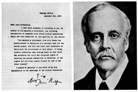 1차 세계 대전을 거치면서 1920년 영국은 팔레스타인 지역의 위임 통치에 들어갔다. 팔레스타인이 영국의 점령지가 된 것이다. 이 과정에서 유태인들은 팔레스타인 이주를 시작했다. 그들은 팔레스타인 지역이 수천 년 전 자신들의 땅이었다고 주장했다. 1917년 영국의 외무 장관 벨푸어는 “영국 정부는 팔레스타인에 유태인 국가 설립을 적극 지지한다.”라고 발표했다. 이른바 '벨푸어 선언'이다.