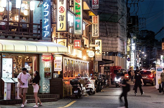 멀리 보이는 한글 간판이 이곳이 부산인지 오사카인지 헷갈리게 만든다. 저 멀리 화포 식당만 한글로 되어 있다.