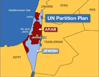 결의안의 내용은 이랬다. 영토의 55%는 유태인에게, 그리고 나머지 45%는 팔레스타인인에게 주는 것이었다. 유태인 영토가 더 많았다.