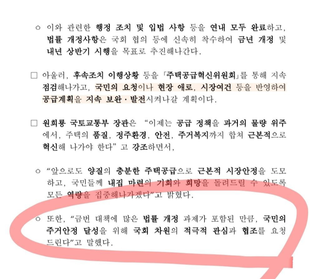 - 네, 그래서 이번 부동산 대책의 구체성이 빠진 것도 여소야대인 국회 상황과도 관련이 있을 수밖에 없는 것이고요. 경찰국 신설이랄지, 검찰 수사권 복원 문제랄지 여러 가지 문제들이 다 이렇게 입법 과제를 회피하는 형태로 이뤄지고 있거든요. 그래서, 향후 여야의 합의 과정을 지켜보는 것도 필요할 수밖에 없습니다. 그래도, 어제 발표된 정책이 의미가 전혀 없나? 그런 건 아닙니다. 바로, 신호를 줬다는 의미는 있을 수 있는데요.