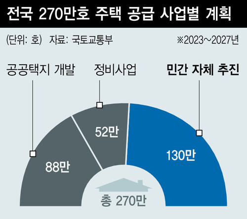 - 그렇죠. 규제를 풀어서 민간에서 공급을 유도한다는 게 기본 입장인데요. 실제로 이번에 발표한 270만 가구의 주택 공급 물량 중에 절반 정도인 130만 가구를 민간이 공급한다고 밝힌 것이거든요. 그럼 이렇게 민간 공급이 가능하려면 규제를 얼마나, 어떻게 완화하는지가 구체적으로 나와야 하는데요. 문제는 어제 발표된 대책에서는 이게 빠져 있다는 겁니다.