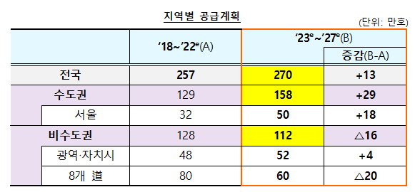 - 그렇지는 않고요. 부동산 정책은 기본적으로 장기 프로젝트인 데다, 연속성 있게 추진해야 하는 특성이 있기 때문에 기본적으로 상당수 물량은 문재인 정부 때 계획된 것들이고요. 다만, 새로 추가된 것들만 보면 신규 정비구역 전국 22만 호, 신규택지 15만 호, 청년 원가·역세권 첫 집 50만 호 등이 추가됐습니다. 그래서, 순수하게 늘어난 물량은 대략 80만에서 90만 가구로 추정이 됩니다. 다만, 서울 공급물량은 늘어났어요.