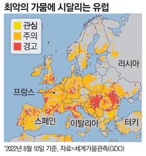 - 네 유럽의 가뭄피해가 확산하고 있습니다. 현재 유럽 대륙의 3분의 2가 가뭄 피해를 입고 있다는 조사 결과가 나왔습니다.