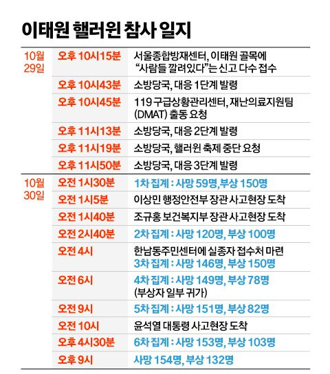 - 나머지는 사고 원인에 대한 수사 절차가 남아있습니다. 경찰은 475명의 대규모 인력을 배치해 수사본부를 꾸렸는데요. 일단, 어제까지는 주로 사망자 신원 확인 절차에 수사력이 집중될 수밖에 없었는데요. 일단, 당시 상황을 두고 누가 밀었다. 혹은 넘어졌다. 여러 주장들이 나오면서 최초 사고 경위는 불명확한 상황이거든요. 이 때문에 경찰은 목격자 진술, 또 CCTV 분석 등을 토대로 정확한 사고 원인을 조사한다는 계획이고요. 이 과정에서는 지자체가 사고 예방 조치를 다했는지도 조사하기로 했습니다.