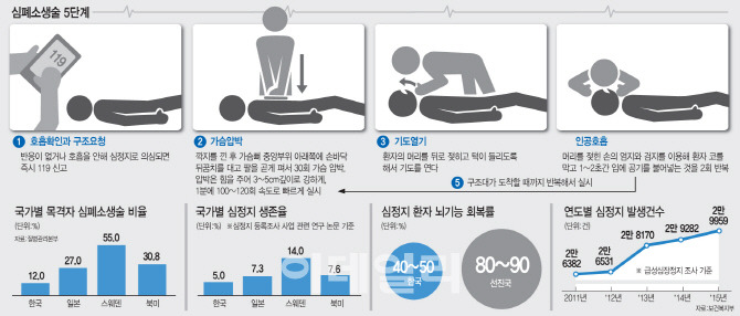 - 이런 상황에서 구조를 하면 우선은 심정지가 온 환자들을 대상으로 흔히 CPR이라고 하는 심폐소생술을 실시해야 하는데, 순식간에 최소 수십 명에서 수백 명을 대상으로 실시해야 하다 보니까.. 이건 1대 1로 해야 되는 건데, 전문 인력은 부족했고요. 그래서, 일반 시민들까지 심폐소생술에 가세하는 모습이 나왔습니다.