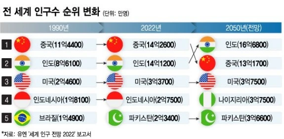 - 일단 이번 조사까지는 중국이 14억 2600만 명으로 1위를 지키긴 했는데요. 그 뒤를 인도가 1400만 명 차이로 바짝 쫓고 있는 걸로 나타났거든요. 그래서, 내년에는 최대 인구 보유국 지위를 인도에 내줄 걸로 예상되는 상황입니다.