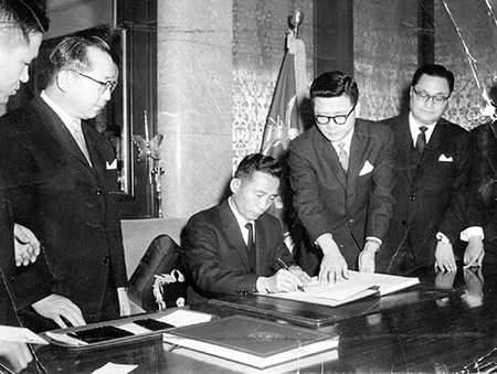 - 그리고, 1960년에는 4.19 혁명도 있었죠. 안팎으로 정신이 없는 사이 한일 청구권 관련 협상에서 진전을 보지 못합니다. 그러다가, 박정희 정권이 들어서면서 회담이 급진전 됩니다. 당시, 박정희 정부는 경제개발 자금이 필요했거든요. 그래서, 당시 중앙정보부장 김종필과 일본 오히라 외상이 만나서 경제협력을 논의하고요. 이어 협정이 체결됩니다.