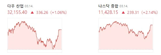 - 바로, 오늘 새벽 밤사이 미국 증시인데요. 미국의 물가 지표가 발표된 이후 일제히 반등에 나서서 상승 전환됐습니다. 일단, 추락했던 은행주들이 일부 반등하면서 나스닥의 경우 2% 이상 다시 올랐고요. 다우도 1% 상승했습니다.