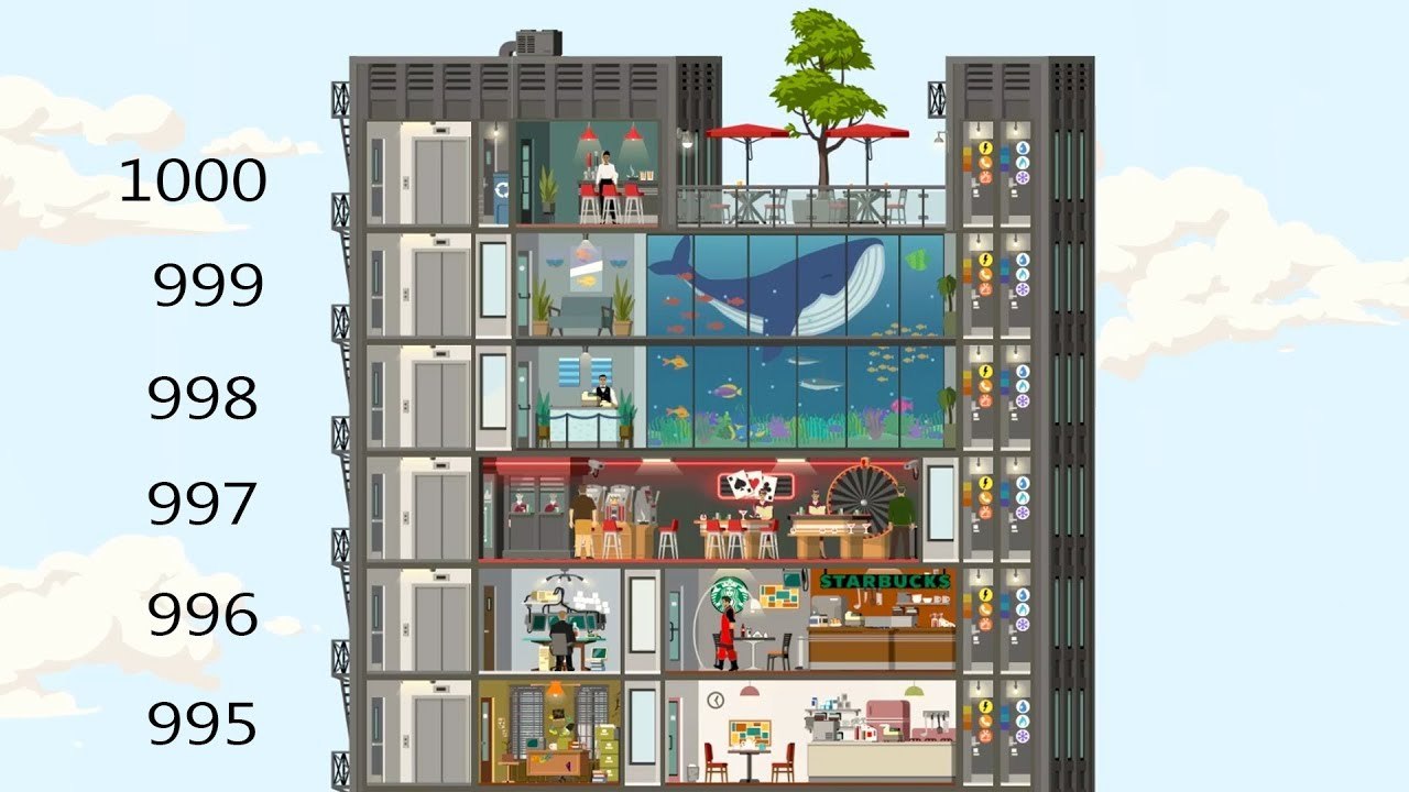 이 건물의 엘리베이터는 최소 3번 이상 정상에 오른 사람들만 이용할 수 있다.첫 경험자에겐 이동 편의를 제공하지 않는다는 규칙이 있다.