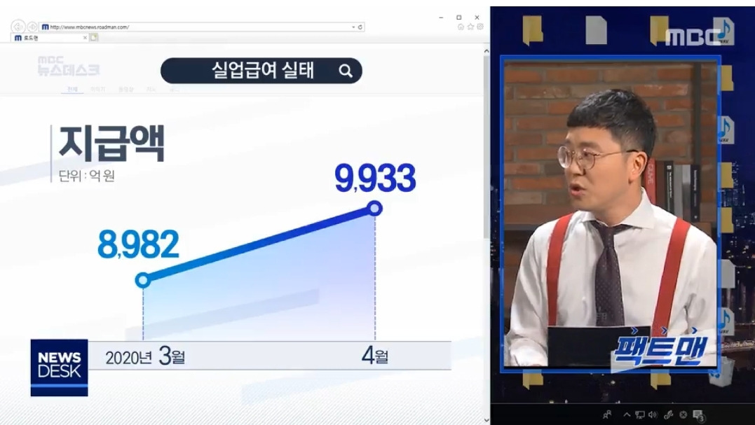 방송 당시, 실업 급여 지급액은 월 9993억 원. 역대 최대 액수로 1조 원을 눈 앞에 두고 있었다. 이후, 1조 원의 벽은 맥없이 무너졌고 지난달엔 1조 1103억 원을 기록했다.매달 슬픈 최고치를 찍고 있다.
