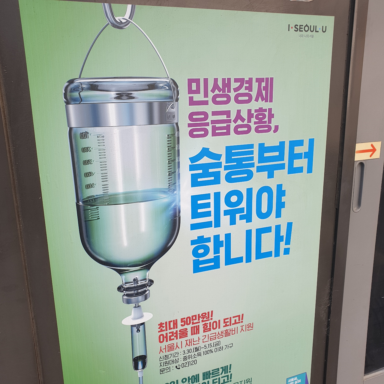 서울시가 만든 포스터, 응급상황엔 수액이 반드시 필요하다.