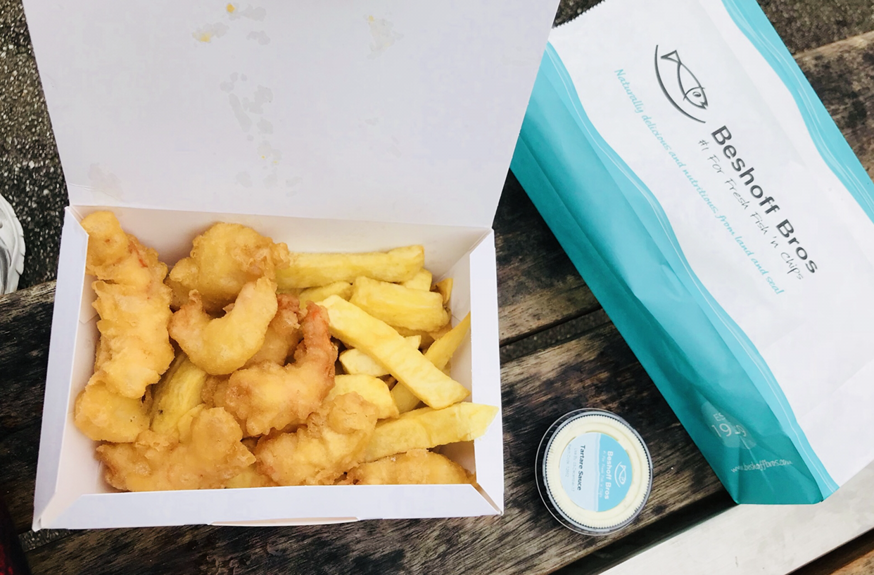 마을 입구까지 내려오니 사람 사는 소리도 들리고 피쉬앤칩스 냄새가 난다. 유명한 가게에 들러 주문을 했고 나온건 생선이 아닌 새우 그리고 감자튀김이다. scampi는 새우다. 멍청아! 스캄피를 몰라 아일랜드에서 피쉬 앤 칩스 못먹은 멍청이가 바로 나다!