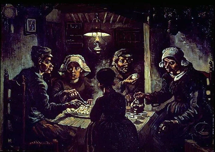 특히 감자 먹는 사람들 그림에서 한참을 있었다. 그림은 침침하고 고된 노동 후 생존을 위해 감자를 먹는듯싶었다. 그림 속 사람 손엔 때가 탔다. 나름 몸쓰는 일을 하는 부모님이 생각나서 괜스레 측은했다. 불쌍해서가 아니다. 사다리 일을 하는 아빠는 5시부터 일어나 새벽에 이사 일을 나가고 자동차 부품공장에서 부업 일을 하는 엄마는 8시까지 항상 출근을 한다. 힘들다면서 오십견이 와도 이 나이에 일하는 것이 좋다며 나간다. 하지만 그림 속 사람처럼 회색으로 돌아와 지친 몸으로 끼니를 채우고 일찍 잠든다. 그림과 저 생각이 오버랩되어 짜증 났다. 노동은 숭고하지만 나도 결국 저렇게 힘겹게 살까봐. 아니 힘겹게 살겠지.