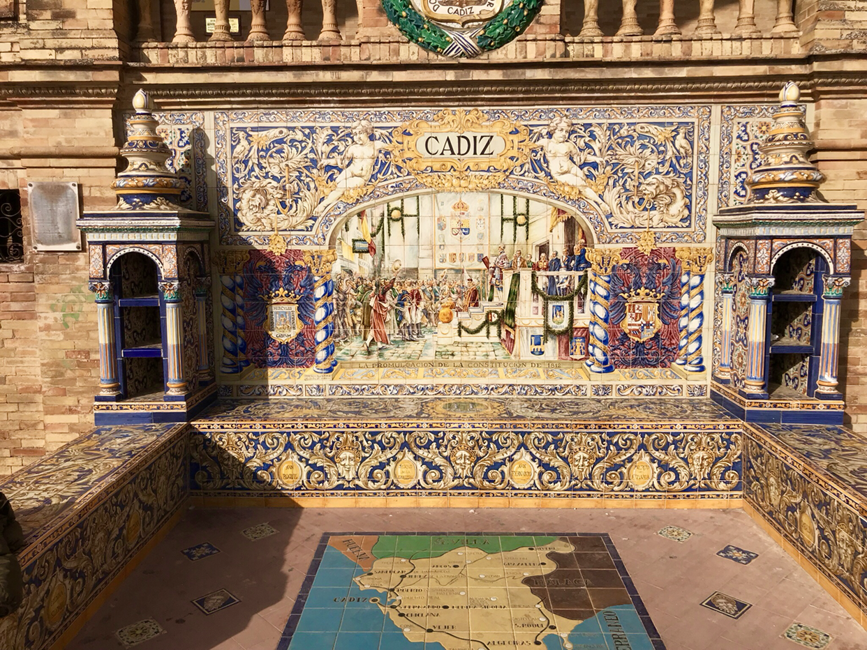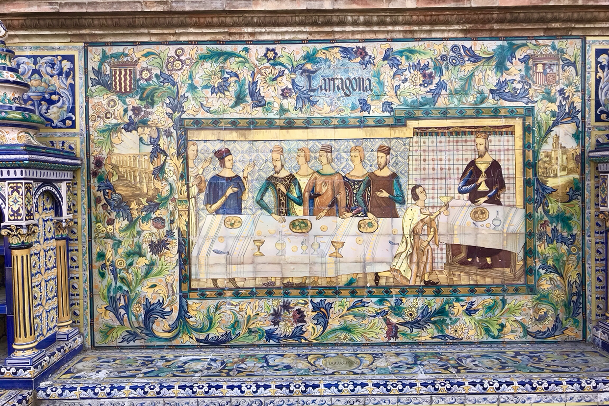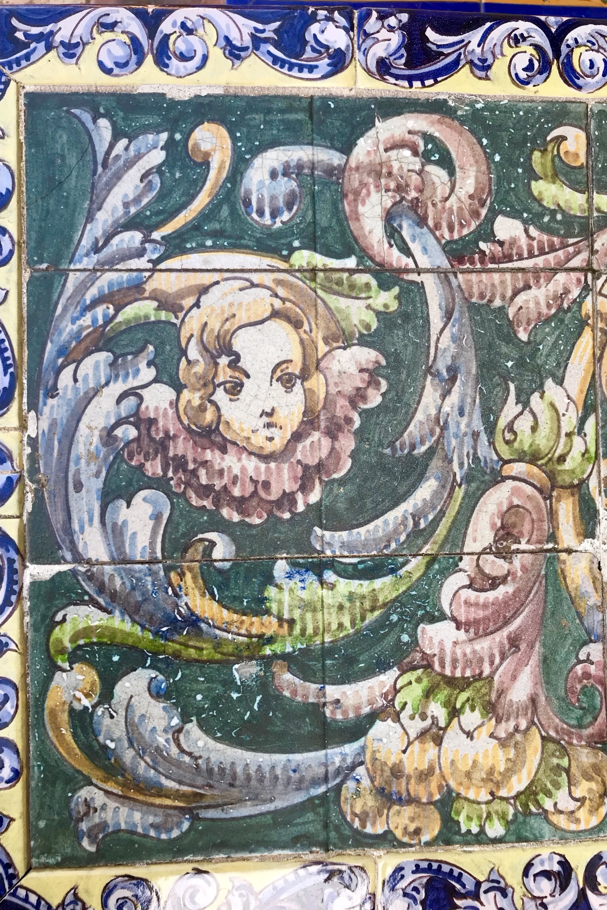 변태를 피해 다른 자리를 찾았다. 스페인 역사를 타일로 표현한 벤치. 역사는 자세히 몰라도 타일과 패턴이 화려해 한참을 구경했다. 그리고 맘에 드는 의자에 앉아 다시 광합성을 했다.