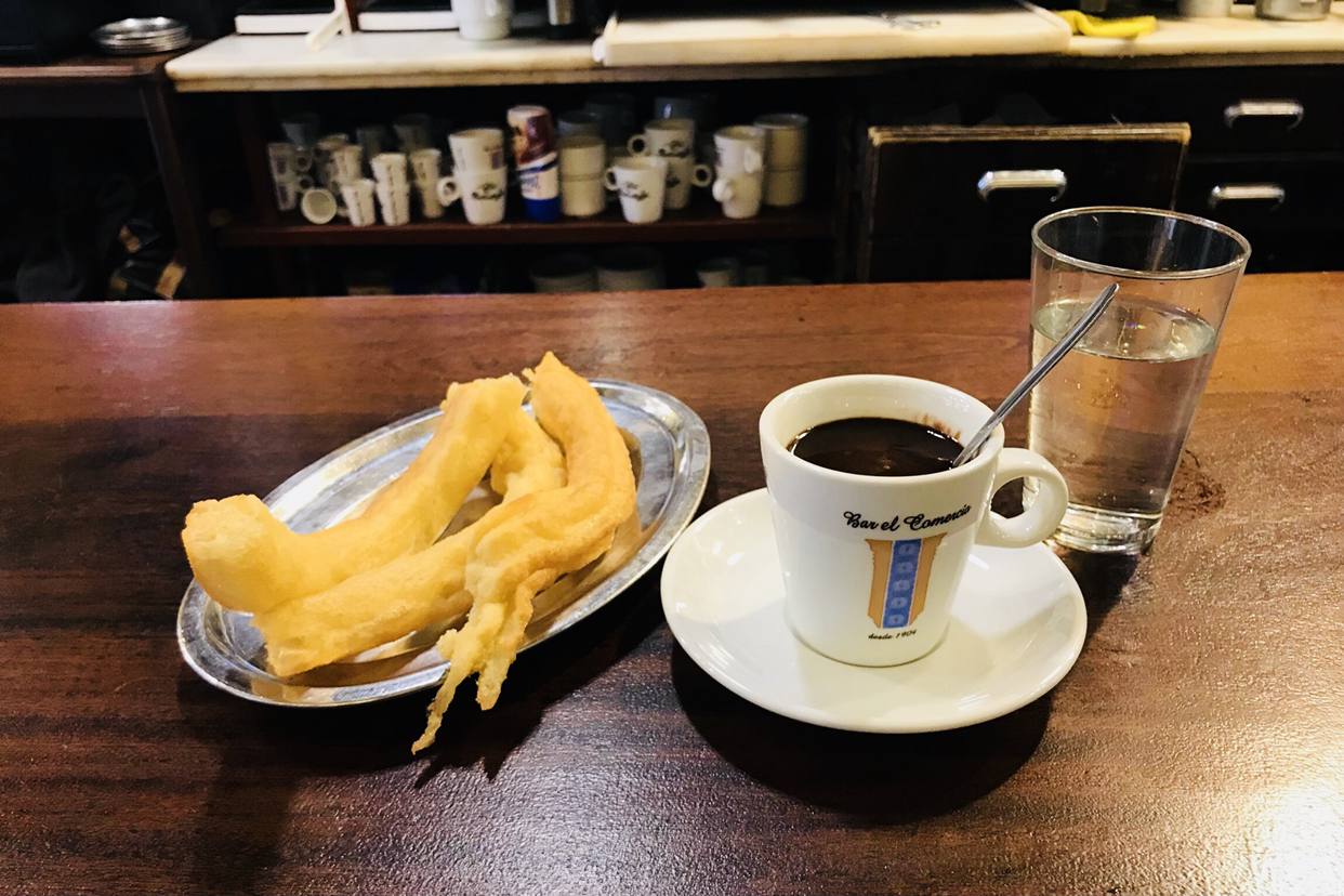 츄러스가 유명한 타파스 가게로 자리를 옮겼다. 핫초콜렛티와 계란맛이 많이 나는 츄러스 맛있다! 맛있다! 맛있어!