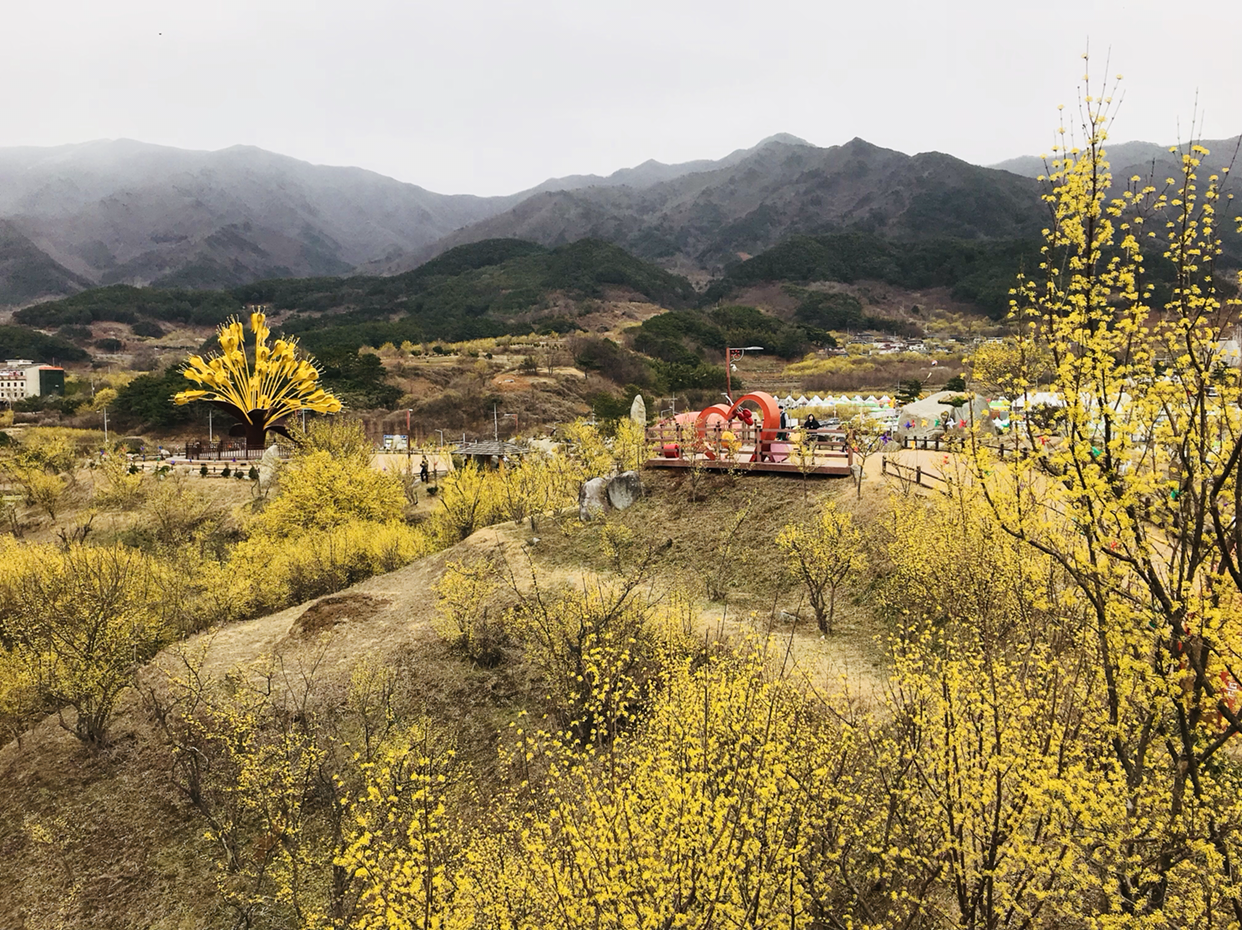 절 산책 후 5시가 지나 도착한 구례 산수유 꽃 축제. 갑자기 우박이 내리기 시작했다. 귀싸대기를 날리던 얼음을 뚫고 노랭노랭 산세와 어우러진 꽃밭을 바라보았다.
