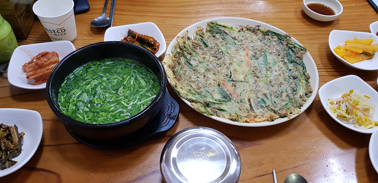 점심은 하동 화개장터에 들러 재첩국과 파전. 남도에 흐르는 섬진강 재첩과 벚굴이 유명하다길래. 하지만 벚굴은... 너무 커... 무섭게 생겼다. 만취한 속이 풀릴듯 시원한 으른 맛 재첩국을 마시고 화엄사로 이동했다.