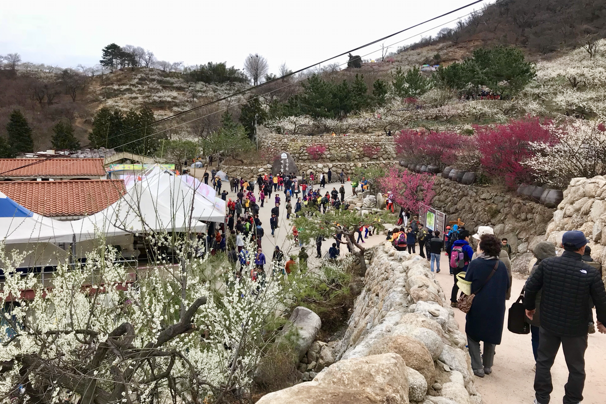 주차난으로 욕을 바가지로 하며 축제장을 향했다. 비록 길은 좁지만 도로 양쪽은 매화꽃으로 가득. 상큼한 꽃향기도 가득.