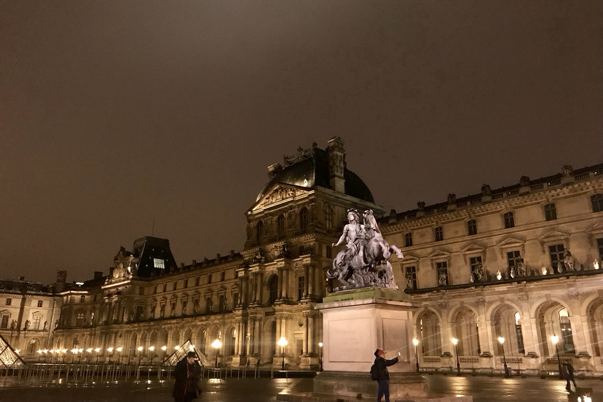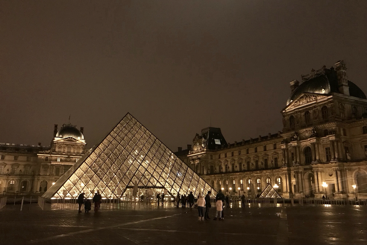 낮에 줄이 길게 늘어진 루브르보다 비온 뒤 영롱하고 스산해진 루브르 피라미드가 더 분위기 있다. 너무 거대해서 지나치곤 했는데 야경이 참 이쁘구나. 여기서 에펠탑 열쇠고리 파는 흑형이 예쁜 사진도 찍어줬다.