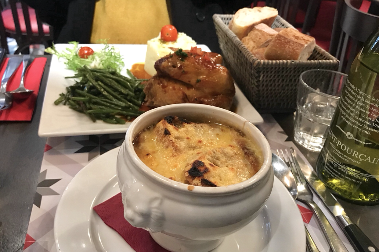 점심은 또 수프. 양파 수프! 프랑스 어니언 수프는 꼬랑꼬랑한 버터 맛이 강해서 호불호가 조금 있지만 내게 최고로 맛있다. 쌀쌀한 날이라 원샷 때리기 좋았다. 후식은 분위기 낸다고 고급진 디저트 카페에 갔다. 신기한 질감에 케이크. 같은 단맛인데 먹어보지 못한 이상한 단맛이 난다. 멍청이라 이상 설명 불가.
