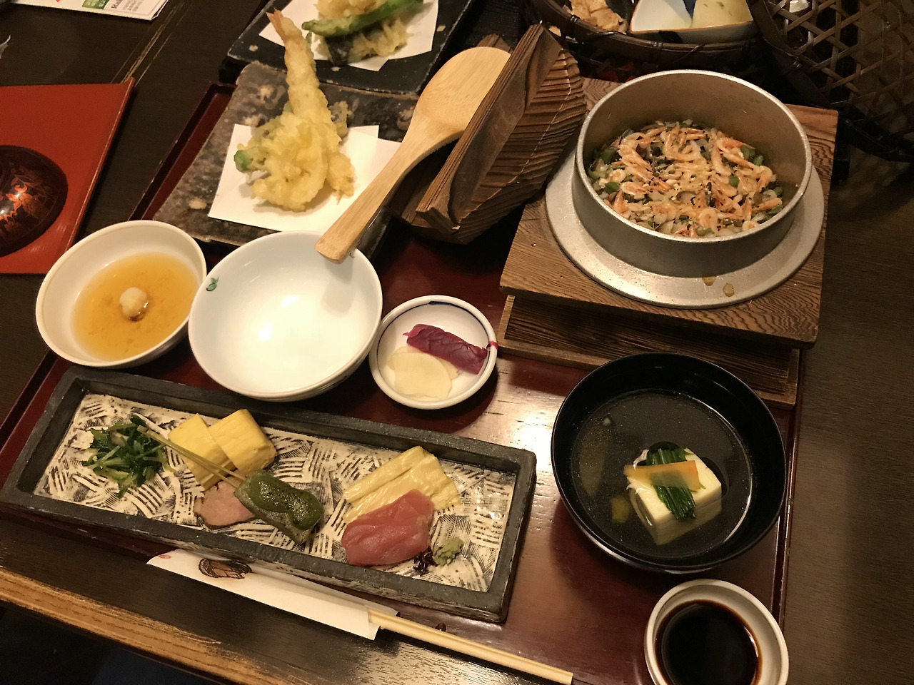 기대 없이 도착한 교토에서 처음 먹은 끼니는 오반자이. 모양새는 한국 백반과 비슷한데 맛이 다르다. 뭔가 특이하고 짜다. 배가 고파 허겁지겁 맛있게 먹었다만... 흡입 후 바로 금각사로 이동. 버스가 엄청 돌고 돌아 금각사에 도착했지만 5시라는 이른 폐장으로 결국 보지도 못한채 버스 투어만 했다.