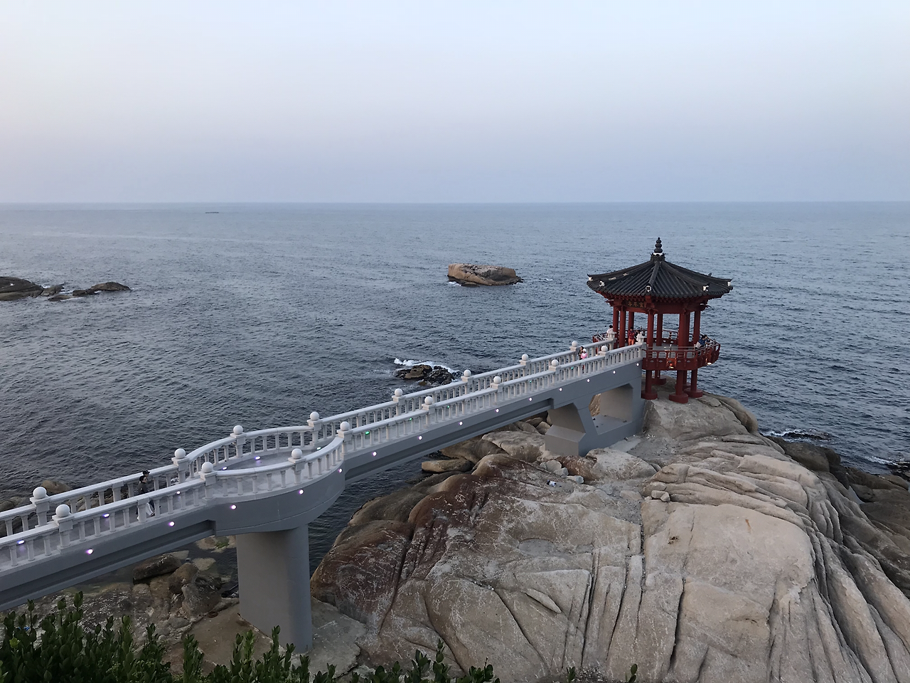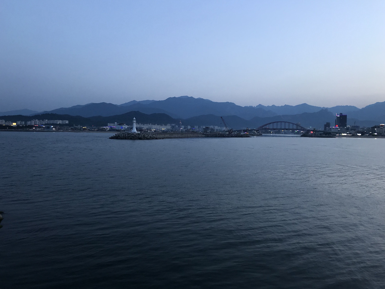 순대집 사장님이 걸어가기 가깝다고 했는데 다리도 건너고 도로도 건넜다... 그리하여 도착한 영금정. 조명이 켜질 때쯤 인위적인 분위기가 들어 별로란 생각이 들었지만 건너편에 마련된 산책로를 걸으니 잡생각이 바닷바람과 날아가 다시 홀가분한 기분이 들었다.