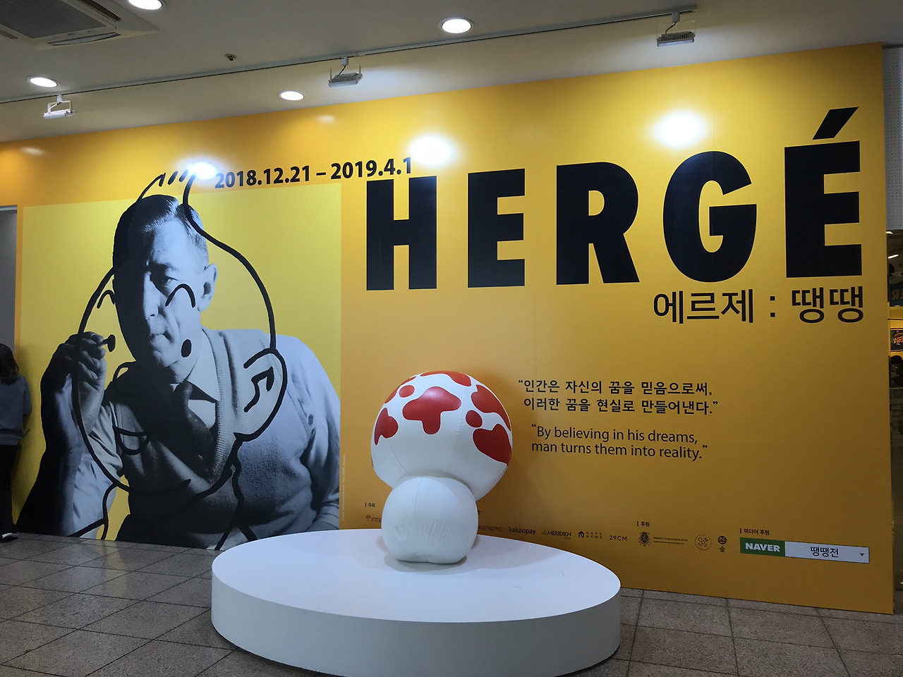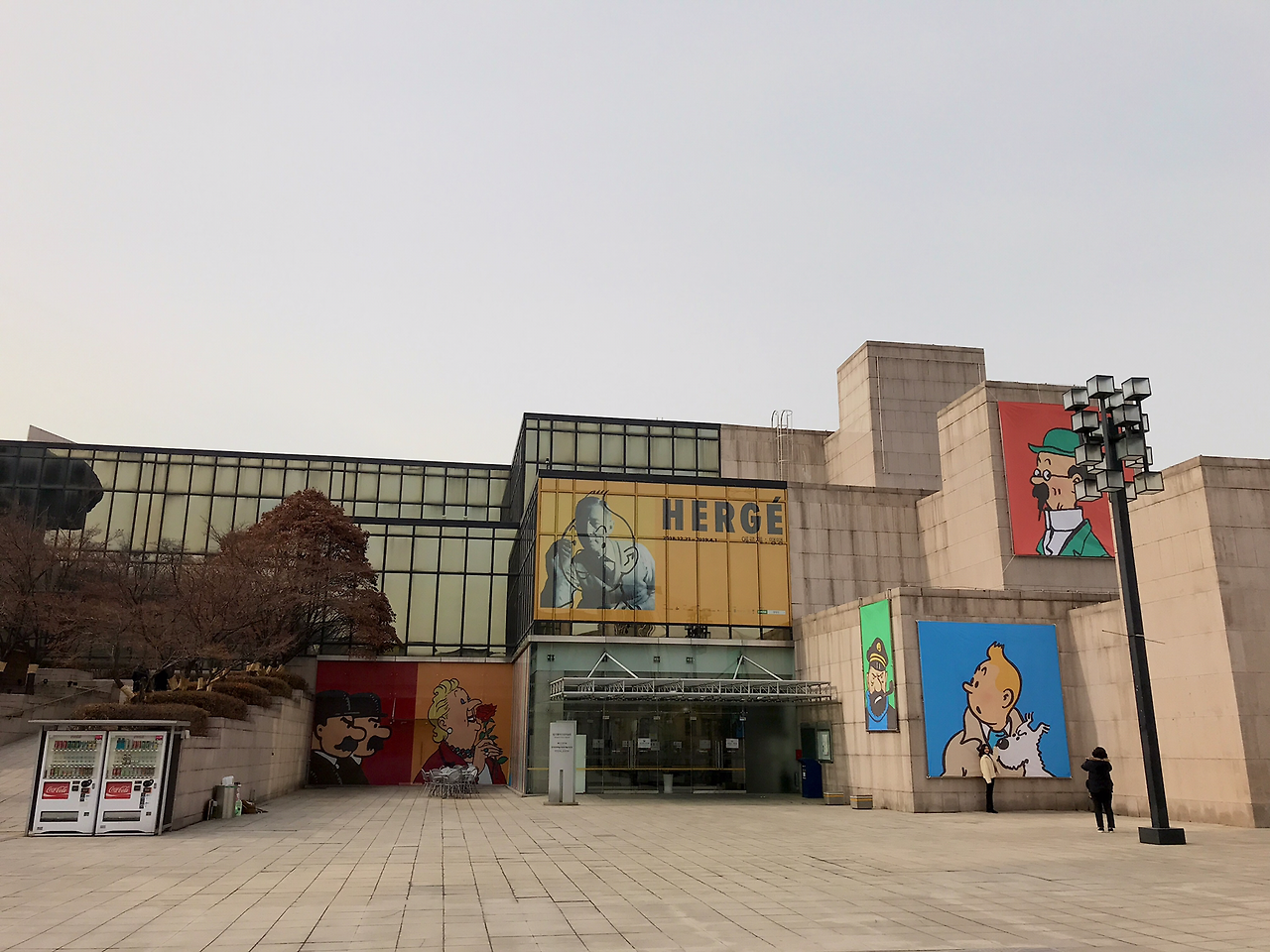배탈이 나서 아팠지만 나왔다. 아마 난 집 밖이 그리웠나 보다. 한가람 미술관에 도착해 멀리서 본 틴틴 포스터가 너무 귀엽다. 나오길 잘했다. 귀엽다!!